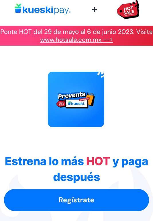Del 15 al 24 de mayo de 2023 ingresa al enlace “www.kueskipay.com/hotsale” y sigue el proceso de registro para acceder de forma exclusiva a nuestro catálogo de promociones y descuentos que estarán disponibles para ti durante el pre hot sale y el hot sale. ¡Prepárate y esperalos!