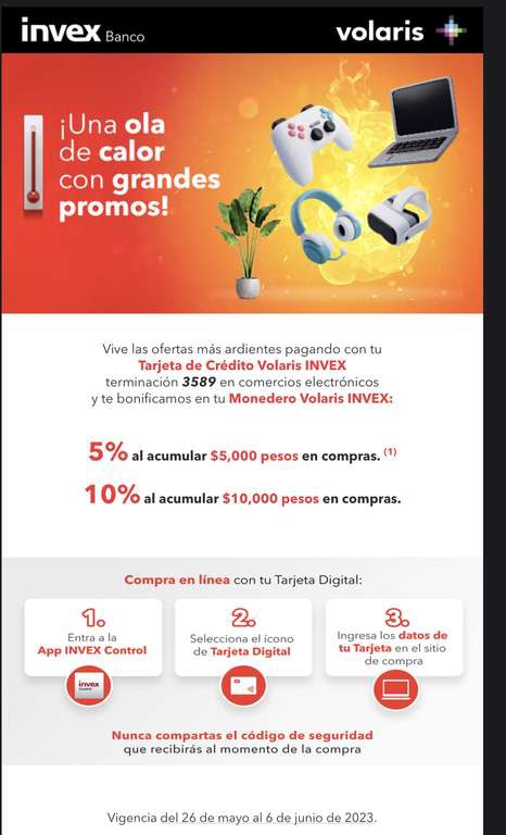 Invex Hot Sale 2023: bonificación en monedero Volaris, 5% en compras superiores a $5,000 o 10% en compras superiores a $10,000
