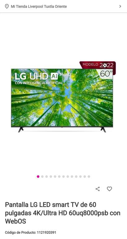 Liverpool: Pantalla LG Led Smart TV de 60 pulgadas 4K/Ultra HD