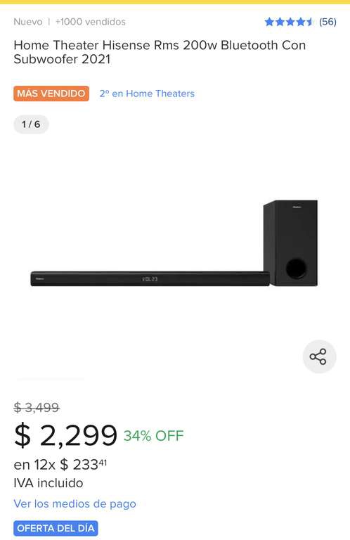 Mercado Libre Ir a la ofertaA pesar de que la compré en $1800 hace un tiempo en Amazon se me sigue haciendo buen precio $2299 se escucha muy bien, yo la recomendaría para alguna recámara.
