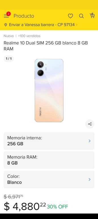 Mercado Libre Ir a la ofertaVi está oferta en mercado libre, yo creo que vale la pena.😁Realme 10 Dual SIM 256 GB blanco 8 GB RAM