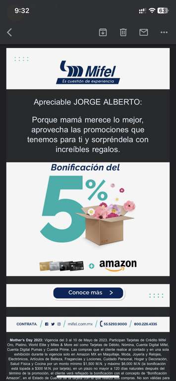 Mifel 5% de descuento en Amazon (compra mínima de $ 1500 con un tope de $ 300)