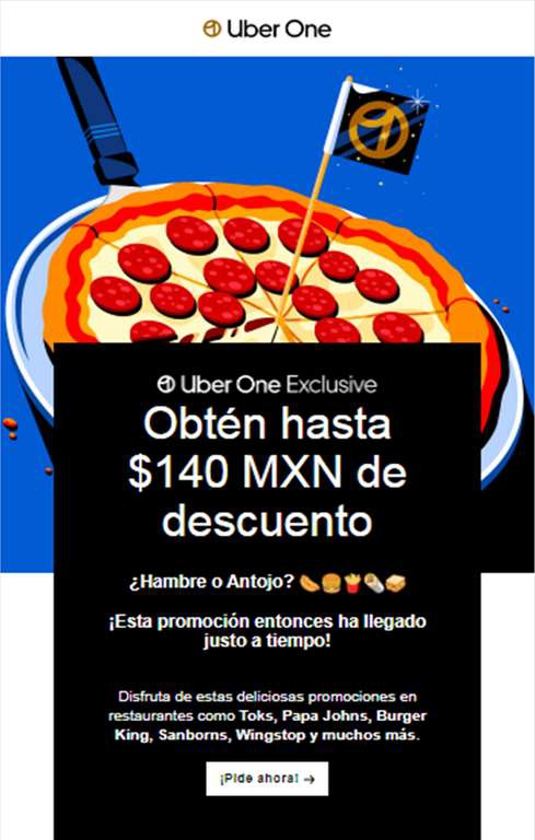Uber Eats [members One Exclusive]: $140 OFF en compras de $401 o más ($80 en pedidos de $400 o menores)