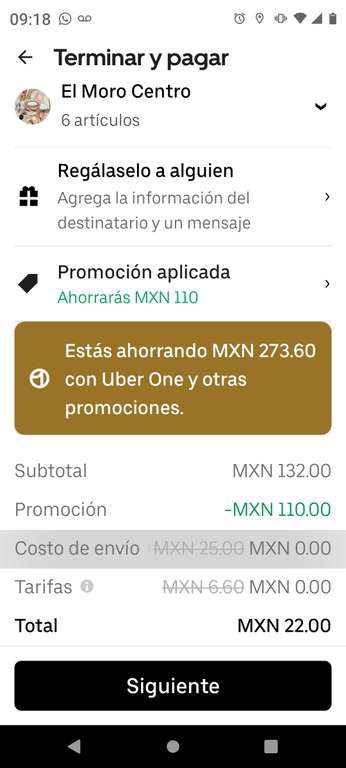 Uber EatsVuelve a estar disponible la promoción de 6 ordenes de churros por $22 tienes que ser miembro one y es valido únicamente si no haz pedido anteriormente en la tienda.