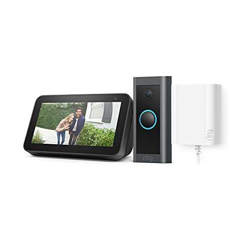 Amazon Ir a la oferta- Este paquete incluye un Echo Show 5 (2da Gen, Edición 2021) y un Video Doorbell Wired con adaptador de corriente Ring