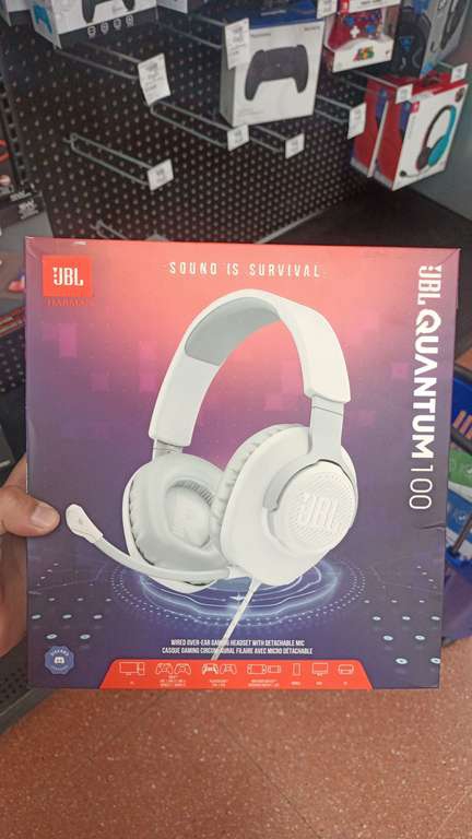 WalmartAuriculares integrales para gamer JBL QUATUM 100 con cable y micrófono abatible blancos precio en tienda oficial $999