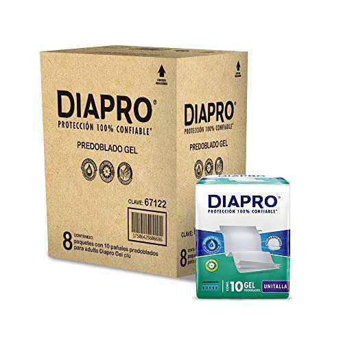 Amazon Ir a la ofertaDiapro Pañal Predoblado Gel Unitalla, 80 piezas (8 paquetes con 10 piezas cada uno, Tamaño de 60 x 90 cm. Salen buenos, recomendados.