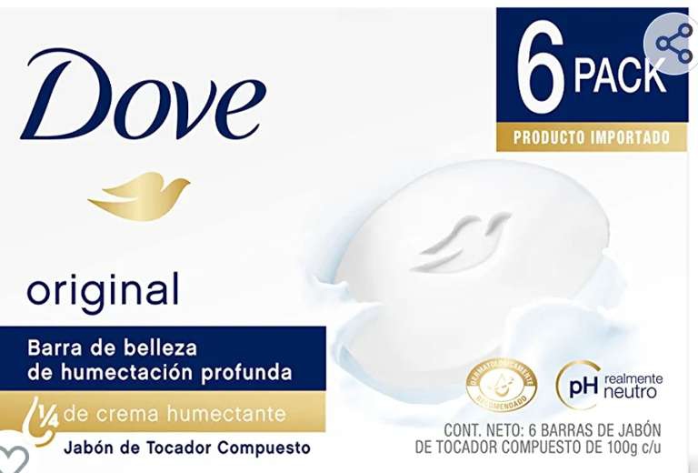 Amazon DOVE Original Bar Jabón 6 barras de 100g cada una | Planifique y ahorre envío gratis con Prime
