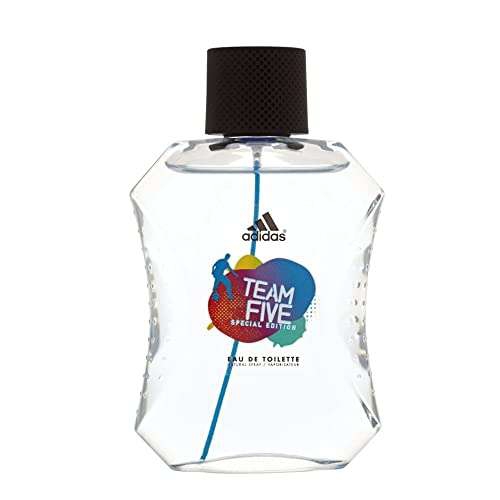 Amazon Ir a la ofertaTeam Five de Adidas es una fragancia de la familia olfativa Aromática para Hombres. Team Five se lanzó en 2013. Las Notas de Salida son manzana verde, limón (lima ácida) y albahaca; las Notas de Corazón son lavanda, menta, salvia y pino; las Notas de Fondo son benjuí y ámbar.