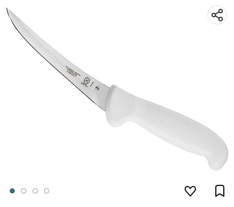 Este cuchillo de deshuesado curvado de 6 pulgadas está hecho con acero japonés de la más alta calidad para un fácil mantenimiento de los bordes y un afilado rápido para un borde afilado. La hoja curva proporciona un mejor ángulo de trabajo al cortar cerca y alrededor del hueso. El cuchillo de deshuesado contiene una sola pieza de acero japonés de alto carbono, sin manchas y un mango de polipropileno