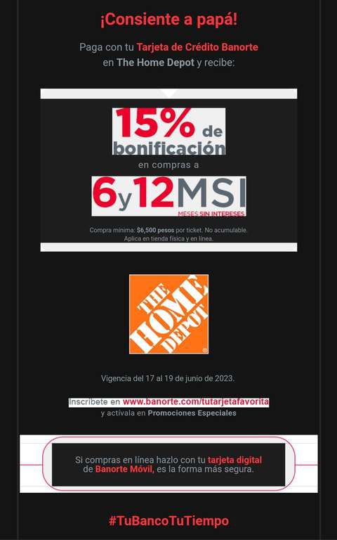 Home Depot Ir a la ofertaActivar en página de tu tarjeta favorita.