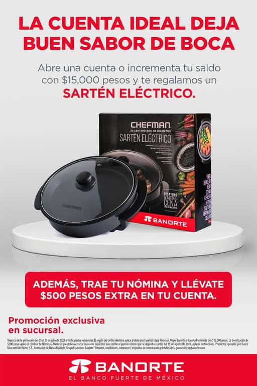 Cuentas participantes: Enlace Personal, Mujer Banorte o Cuenta Preferente.