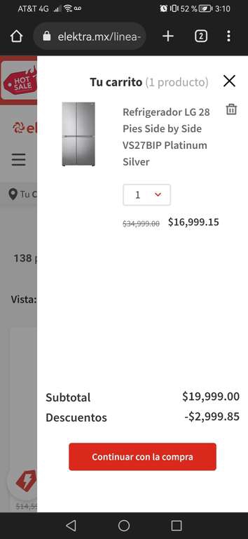 Elektra Ir a la ofertaRefrigerador LG 28 pies $16,999.15 pagando con paypal