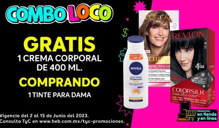 HEB Ir a la ofertaTinte para dama, regala crema corporal de 400 ml.