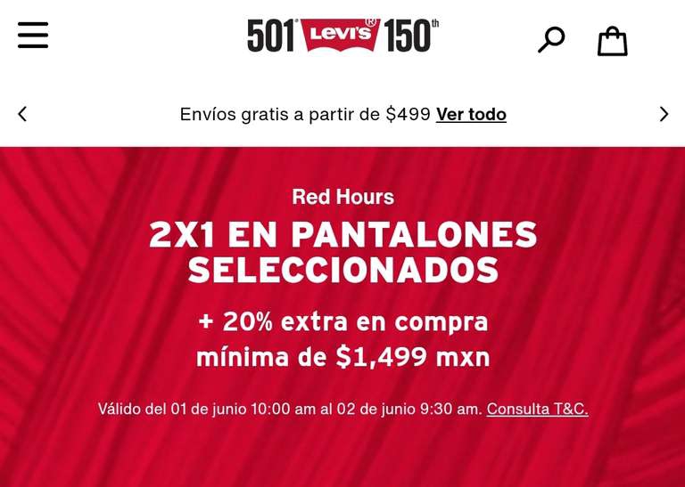 LEVI'S Tienda en Línea: 2x1 en Pantalones + 20% extra en compra mínima de $1499