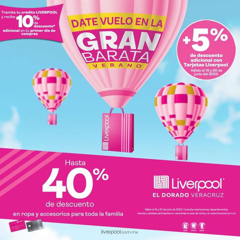 Los primeros dos dias, 19 y 20 de junio tendrán 5% de descuento extra para clientes liverpool.