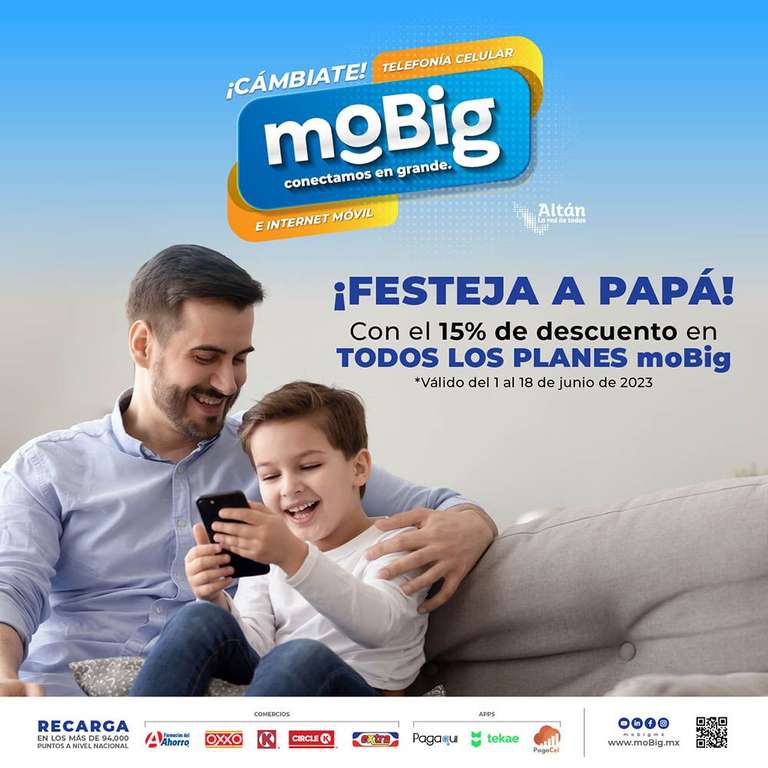 Por día del padre mobig tiene el 15% de descuento en todos sus planes