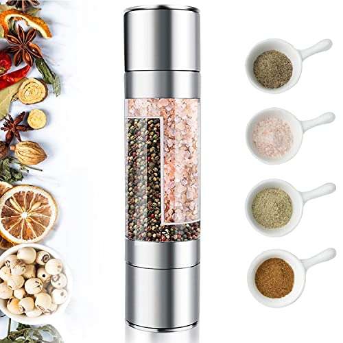 Amazon Ir a la ofertaMolinillo de Pimienta y Sal 2 en 1 Moledor de Acero Inoxidable Coctelera, con Núcleo de Molienda de Cerámica y Botella de Transparente con Compartimentos,para Moler Sal y Pimienta Simultáneamente