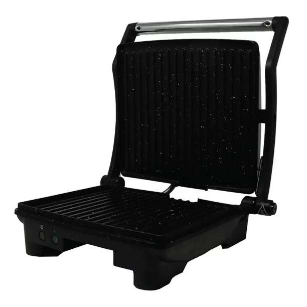 - La Parrilla de Paninis está fabricada con parrillas de Mármol Antiadherente diseñado para una fácil limpieza, cuenta con un mango de acero inoxidable y cuenta con una Luz indicadora de On/Off para saber cuando el producto esta encendido o apagado para evitar accidentes dentro de la cocina. Su diseño elegante es el complemento perfecto para cocinar de manera saludable todos los días.