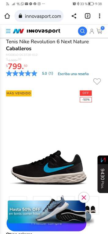 Tenis Nike correr 50% en varios colores en Innovasport | Ejemplo: Tenis Nike Revolution 6 Next Nature