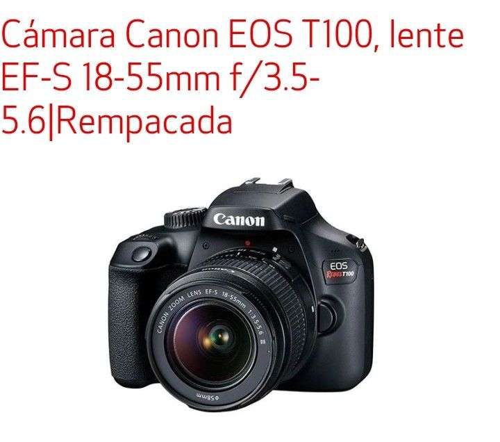 Tienda Canon Ir a la ofertaCámara Canon EOS T100, lente EF-S 18-55mm f/3.5-5.6|Rempacada tienda oficial Canon. Incluye un tutorial online para principiantes. Buena cámara para aquellos que inician en la fotografía. Puede pagarse en 18 meses sin intereses pagando con. Paypal.