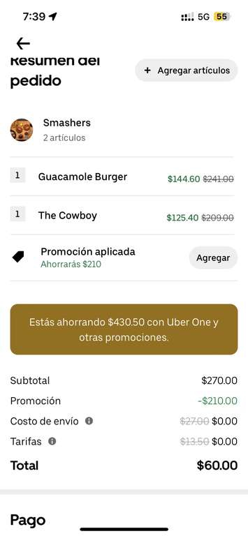 Uber Eats Ir a la ofertaEligen la Guacamole Burguer y pueden combinar con la Cowboy o Gardenburger para llegar al mínimo de 450