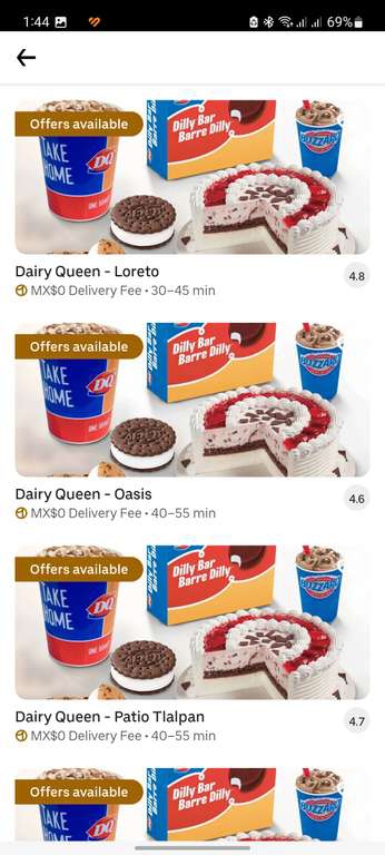 Dairy Queen 4 blizzard medianos x $120 o 4 blizzard grandes por $144.
