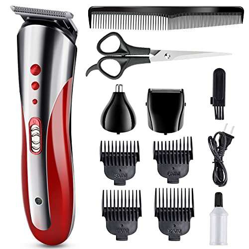 - 【Corte de Pelo Multifuncional】Está equipada con 4 peines-guía diferentes (3/ 6 /9/12 mm), Equipado con recortador de nariz y cabezales de afeitado,puede controlar fácilmente la longitud del cabello para crear peinado perfecto, también es apto para principiantes para recortar cortes cónicos, inscribir diversos patrones, recortar barbas, etc.