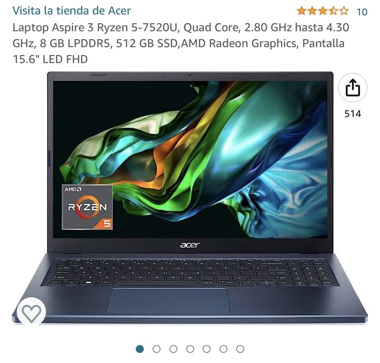 * Procesador: AMD Ryzen 5-7520U, Quad Core, 2.80 GHz hasta 4.30 GHz, 4 MB Cache