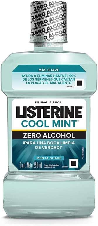 Amazon Ir a la ofertaLISTERINE Cool Mint Zero elimina hasta el 99% de los gérmenes que causan la placa, caries y mal aliento. Enjuague bucal sin alcohol, ideal para las personas que les gusta un sabor más suave. Úsalo en la mañana y en la noche para un aliento fresco y una boca más saludable por 24 horas.