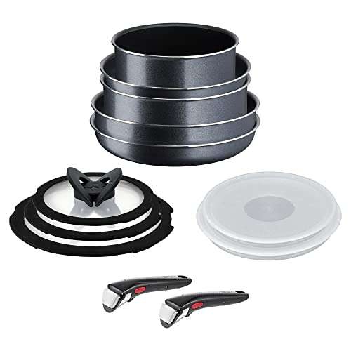 Amazon: T-Fal Batería de Cocina de 12 piezas Ingenio XL Force Negra con Mango Removible