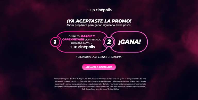 Club Cinpolis Hasta 50 puntos por ir a ver a Barbenheimer (Usuarios seleccionados)
