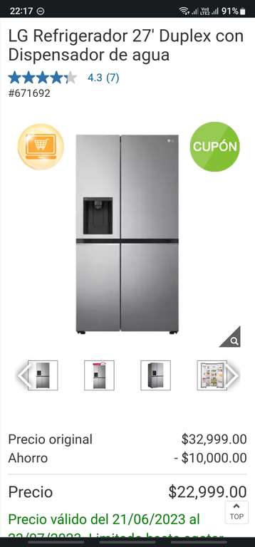 Costco Ir a la oferta- Monstruo de 2 puertas 27 pies con dispensador de agua y hielos incluidos sin instalaciones de bomba o garrafon extras. Su precio en cualquier lado no baja de los 30, yo lo anduve cazando. Cupón 10 mil reales de descuento ya incluidos en el precio final sin agregar nada, envío a domicilio gratis. Lo que sí es que no tiene meses ni con PayPal ni nada es en una sola exhibición el pago.
