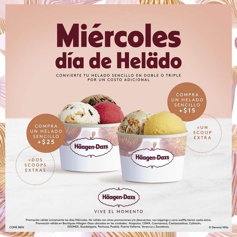 Häagen-Dazs: Convierte tu helado a doble ($15) o triple ($25), únicamente los miércoles | Ciudades seleccionadas.