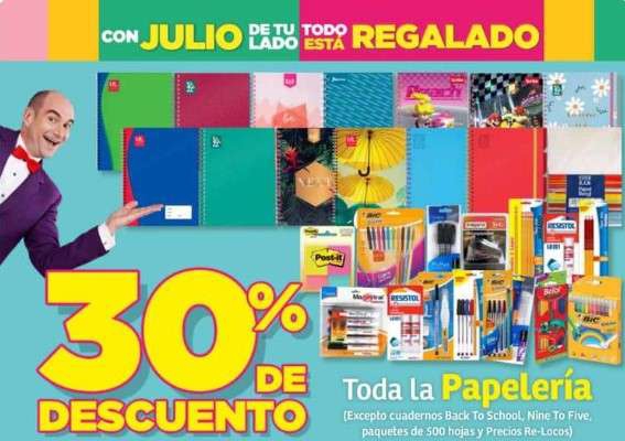 Julio Regalado 2023 Soriana 30% OFF en toda la papelera