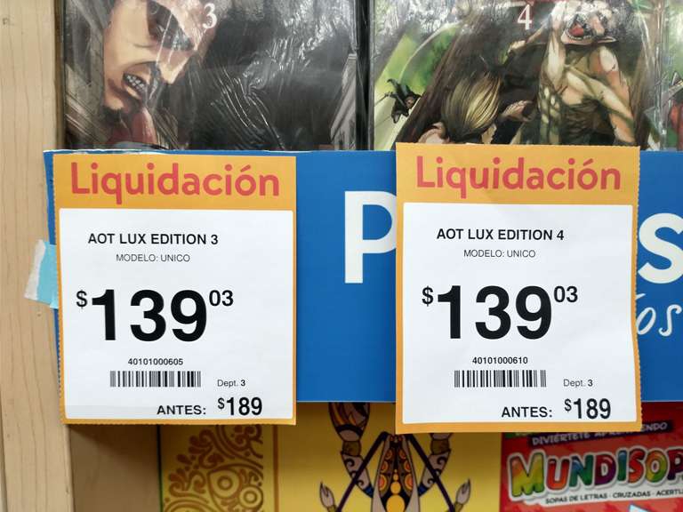 Manga Attack on titan Deluxe edition. Walmart plaza oriente CDMX.