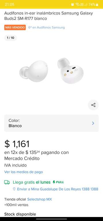 Mercado Libre Ir a la ofertaAudifonos Galaxy buds 2, hay diversos colores, he comprado 2 hasta el momento y todo bien