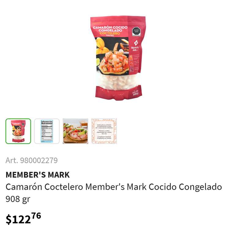 Sam's club Langostinos cocidos en coctelera 908g | Precio añadiendo al carrito
