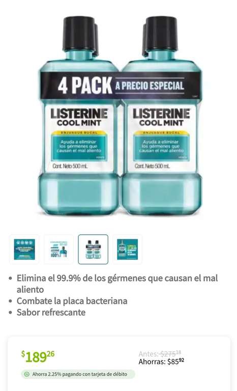 Sam's Club Periplaza Puebla Listerine Colutorio Menta Fresca 4uds 500 ml