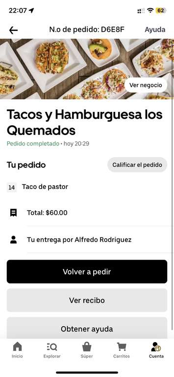 UBER EATS: 14 Tacos x 60 pesos [Uber One] Tacos y Hamburguesas los quemados