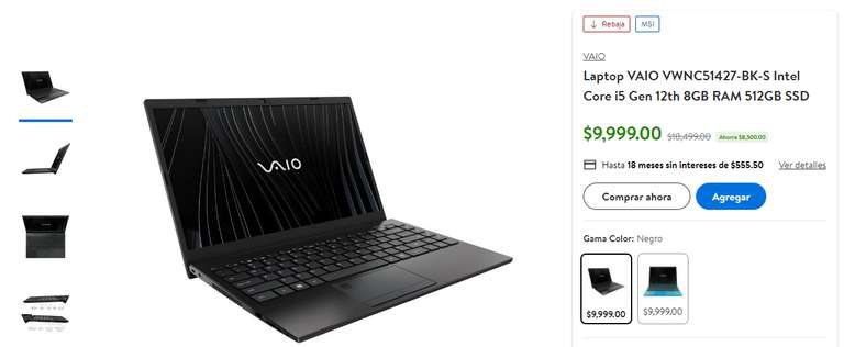 Walmart Ir a la ofertaPor si alguien le gusta la marca VAIO considero que esta laptop esta a buen precio pagando con trajeta de credito BBVA a 12 meses sin intereses.