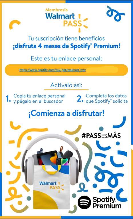 walmart | Pase Walmart 4 meses de Spotify premium gratis (usuarios seleccionados)
