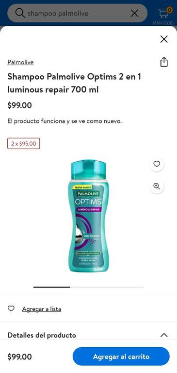Varios olores y tipos de shampoo Palmolive Óptima