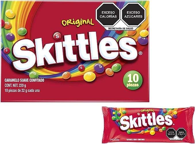 Consiente a los pequeños y grandes con los caramelos suaves Skittles Original. Skittles son dulces confitados de diferentes sabores frutales como fresa, limón, uva, naranja y manzana verde. Degusta como postre dulce a cualquier hora del día y comparte momentos llenos de sabor y diversión con toda tu familia. Para tu comodidad vienen en una bolsa resellable que te ayuda a mantener el producto sobrante con la calidad de siempre.