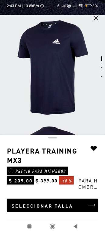 Adidas Ir a la ofertaYa tiene rebaja del 40% y si le agregan el cupón HOT15 baja de $399 a $203. Para envío gratis, hagan la compra desde una computadora porque en la app sale en $99.