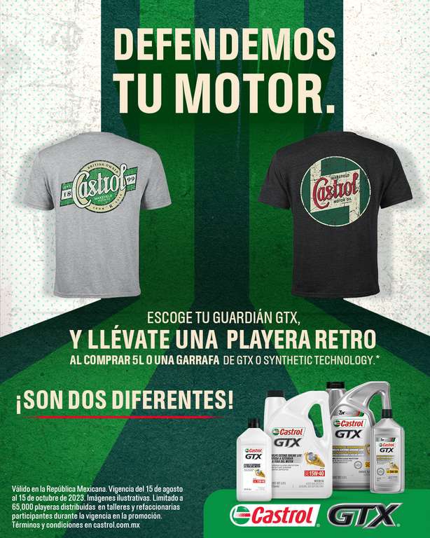 Castrol: Playera retro de regalo al comprar 5L o una garrafa de GTX o SYNTHETIC TECNOLOGY