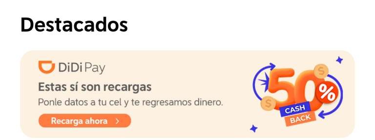 Didi: 50% de cashback en recargas telefónicas