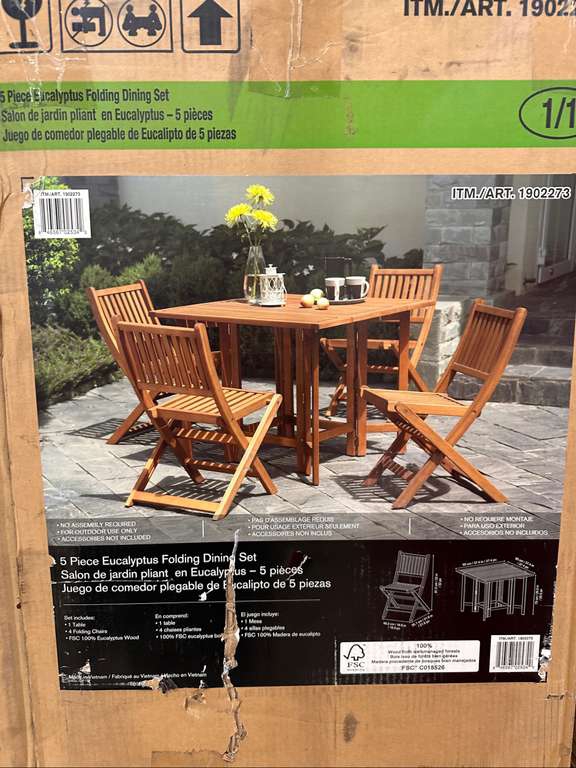 CostcoVi este comedor en liquidación en sucursal Arboledas. Está fabricado en madera de 100% eucalipto y me parece que es un excelente precio por un comedor para jardín de esta calidad y que además es plegable para un fácil almacenamiento.