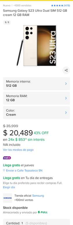 Mercado Libre Ir a la ofertaCreo que es buena oferta es vendido por Samsung y a 24 meses