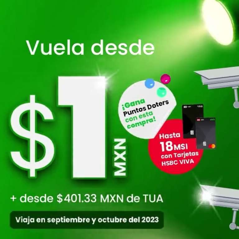 Vivaaerobus Ir a la ofertaRegresa la promoción de Viva Aerobus con vuelos desde - + TUA que comienza desde los $401. Los vuelos son para viajar en los meses de septiembre y octubre del 2023.